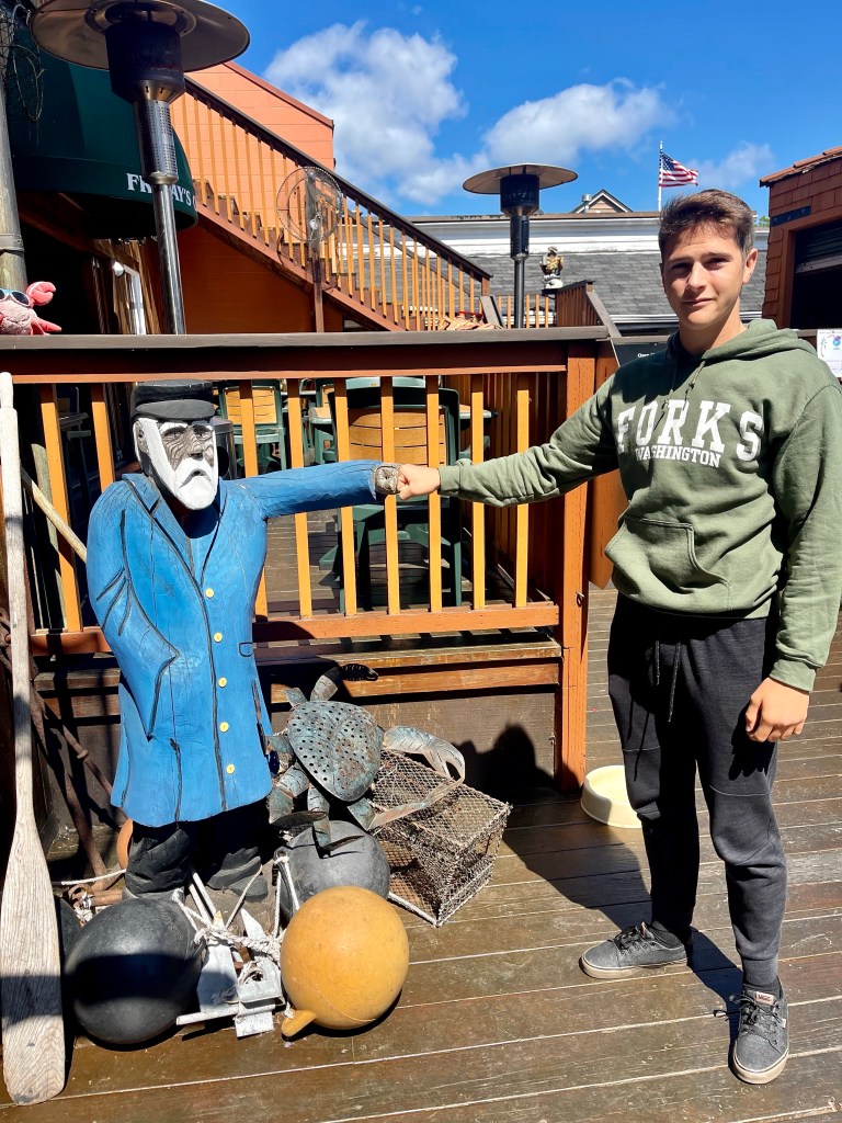 I think at some point I saw a magazine article about the tourist spot, Friday Harbor, and had always wanted to check it out. Plus it was a bit of a break in the action from all of the hikes we had been doing. We immersed ourselves in full Tourist Mood. We walked around a little checking out the landing and then had lunch outdoors over looking the harbor. Fine Pacific Northwest seafood was on our menu as I enjoyed a Salmon Reuben and Alec munched down on a Grilled Crab Sandwich. Quote from Alec, “That was scrumptious!”