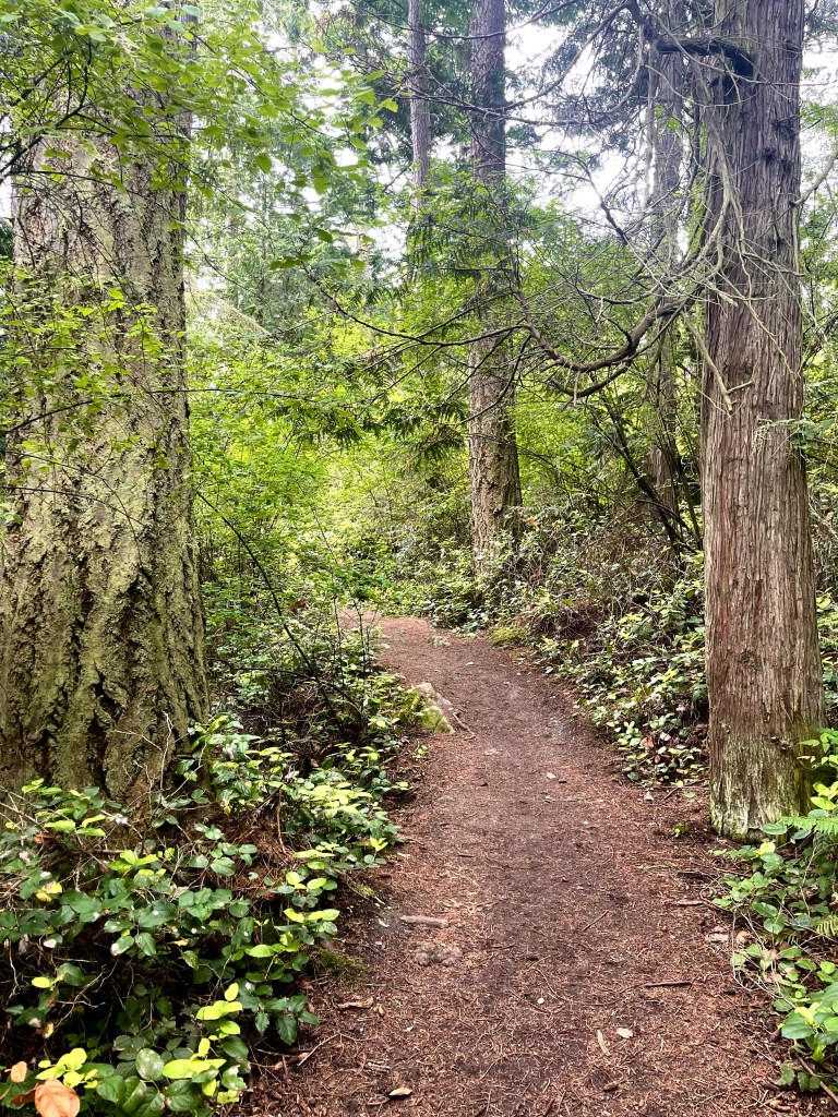 This wonderful little hike is on Whidbey Island just across a narrow strait from Fidalgo Island. The hike is in the Deception Pass State Park and you will need an Adventure Pass. This hike meanders through a wooded area with gorgeous peak-a-boo views of the water. There are many little offshoot paths to wander around this area. Eventually the path ends up heading to the Deception Pass Bridge that spans the two islands.