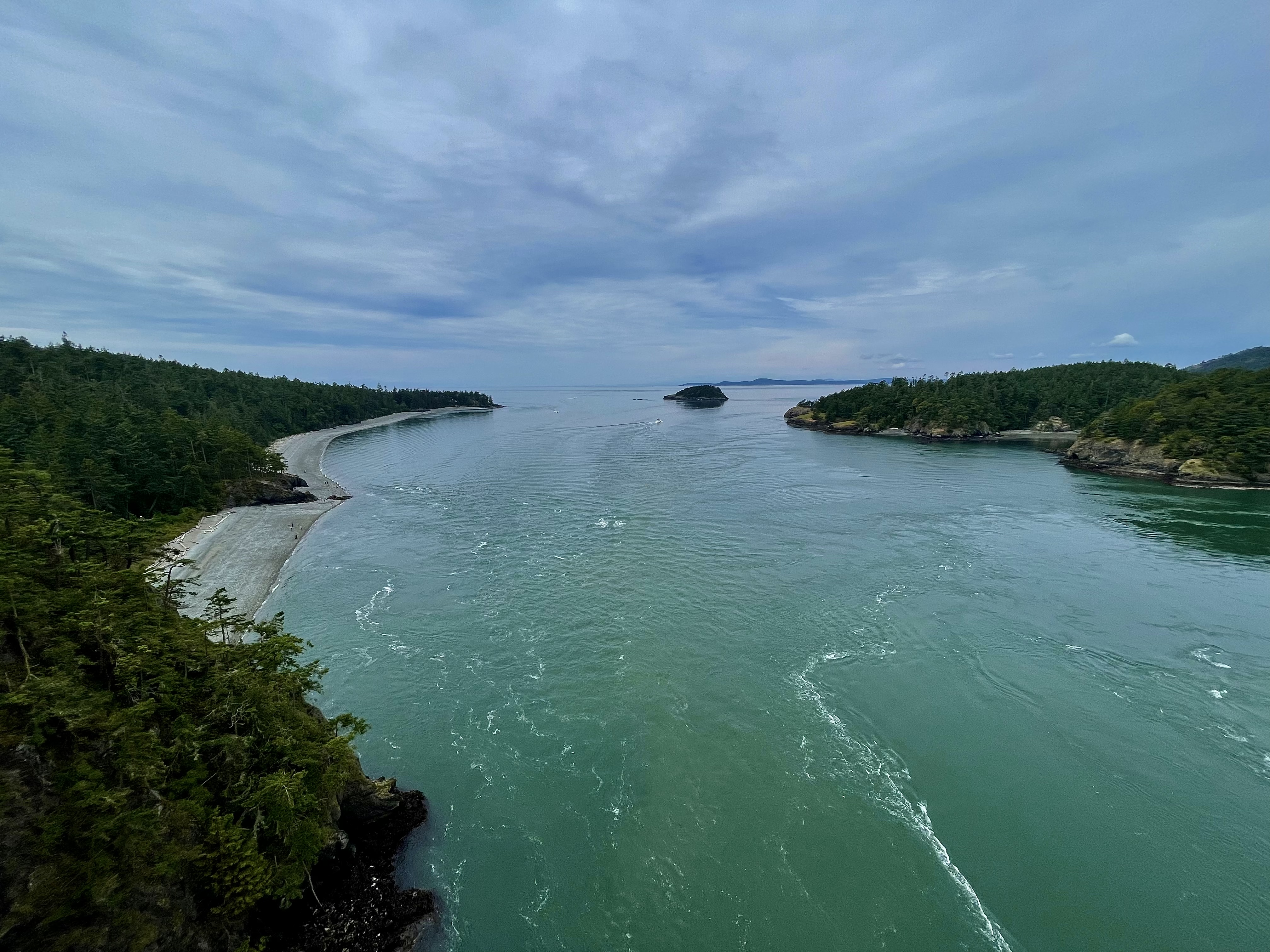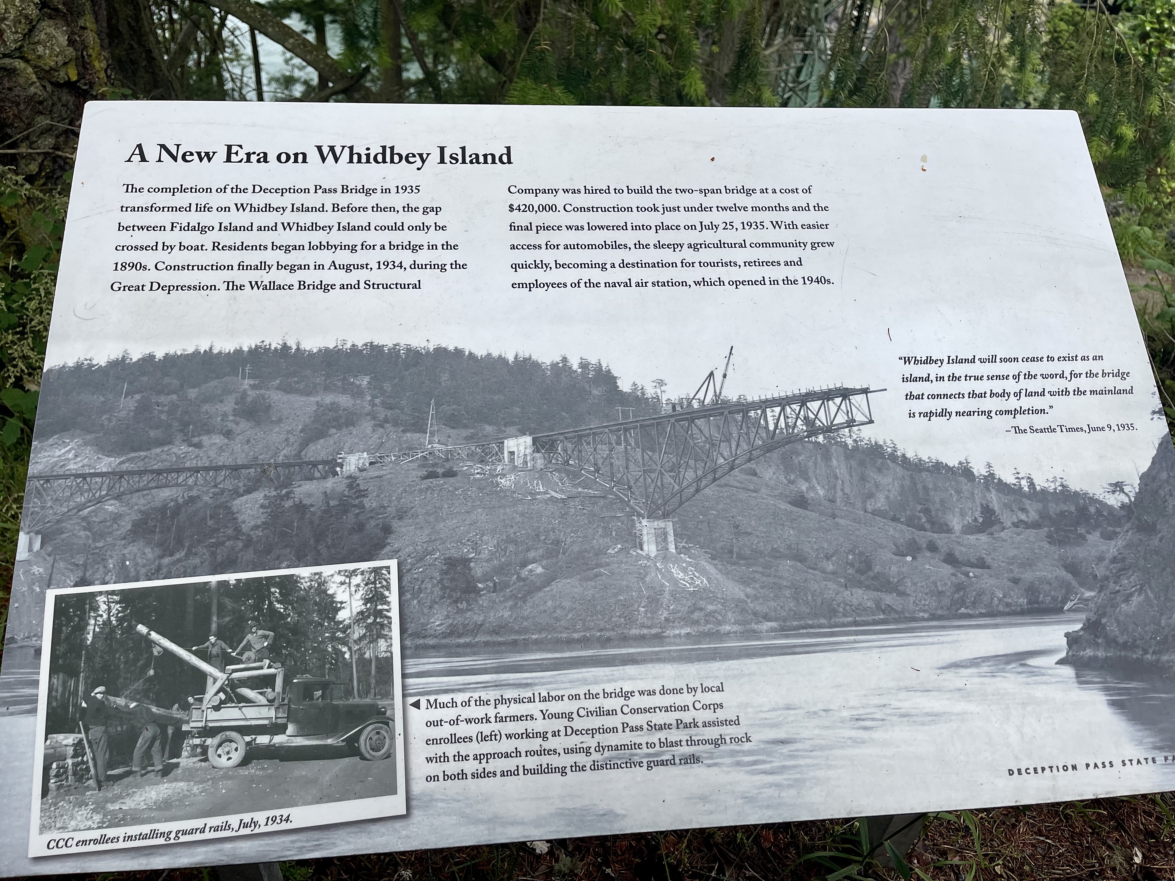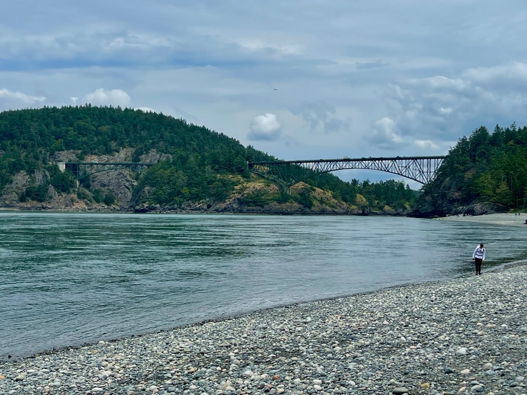 My son Alec and I walked across the Deception Pass Bridge as well as it provided an excellent vantage point with which to view the two islands, the woods, beach and the larger body of water the Straits of Juan de Fuca.