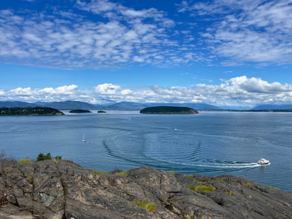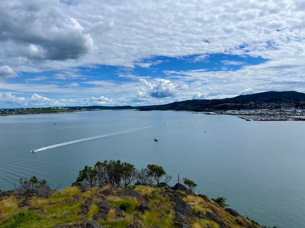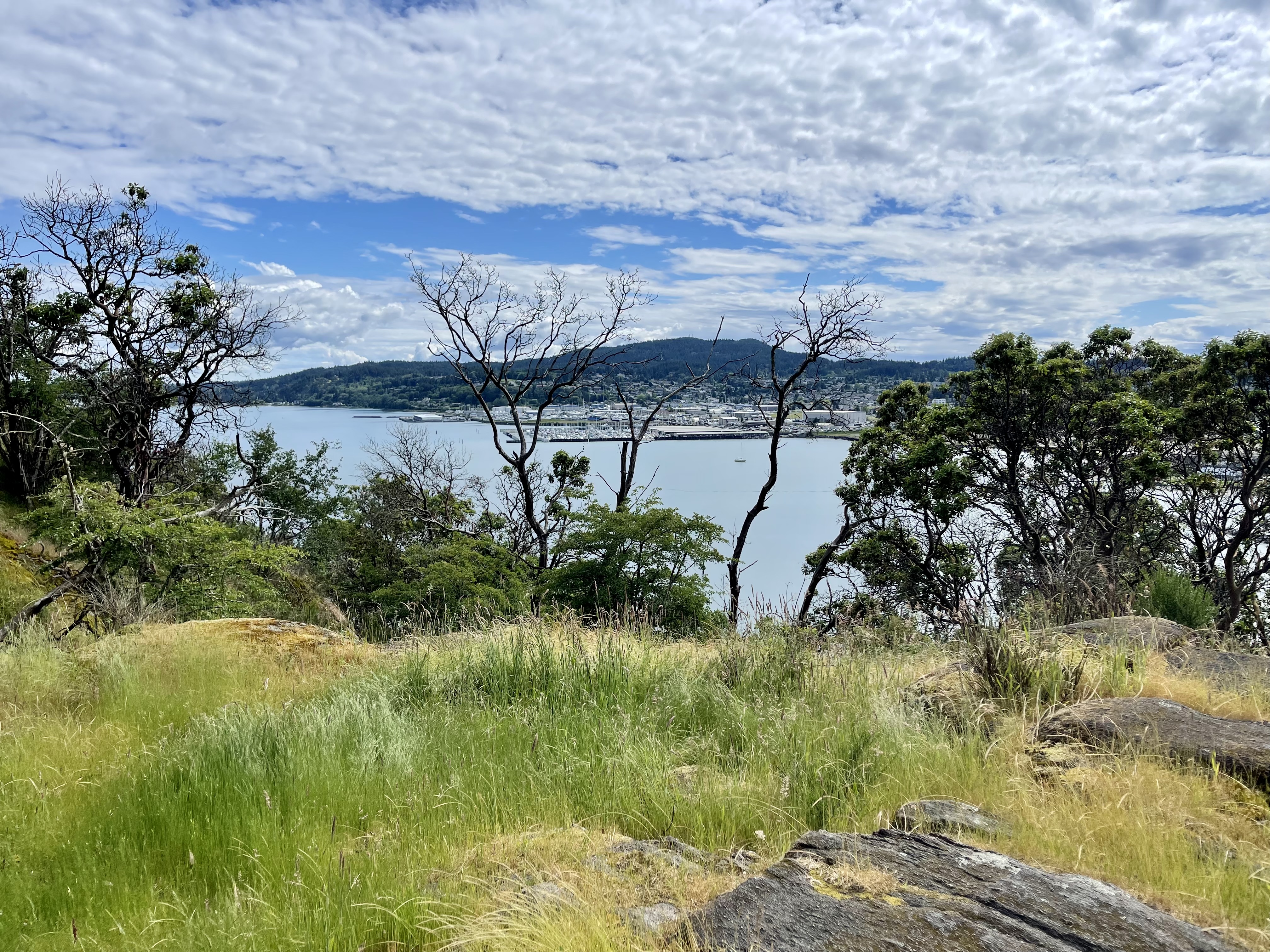 The 2.2 miles loop in Washington Park provides stellar views of Puget Sound and the surrounding San Juan Islands. Besides the water views it has a lush thick forest with big firs, and lots of ferns. It is absolutely beautiful. Still, being someone that wants to get away and really immerse myself into nature I was a little disappointed that I was walking along a single lane roadway with cars going by once in a while. However, about half way through my walk I found the trails and then I was in hog heaven, as this was exactly what I was looking for. Maybe even a bit more as one trail I took me on a tiny trail, slippery with mud, with a steep short grassy hill sloping dramatically to a cliff with a drop either onto rocks far below or into the sound and with no way back. So once it went from sketchy to hair ball, (That is when it also added some scrambling), I said to myself, “this is a view to die for” literally! That is the point were I retraced my steps to a more moderate version on a PNW trail.