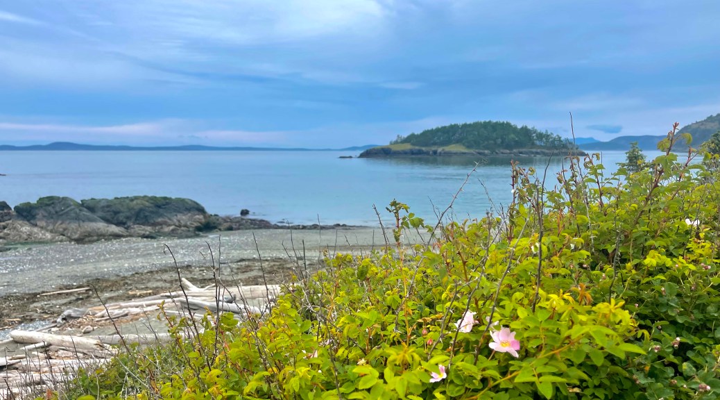 I went out on the point that was a sort of peninsula with Rosario Beach adjacent to the North and Sharpe Cove just to the East off of Bowman Bay. The trail to the point was rather steep in places and there was more than one way to go so I pretty much wandered around taking it all in. The scenic waterways could be enjoyed from high on a cliff, but watch your step.